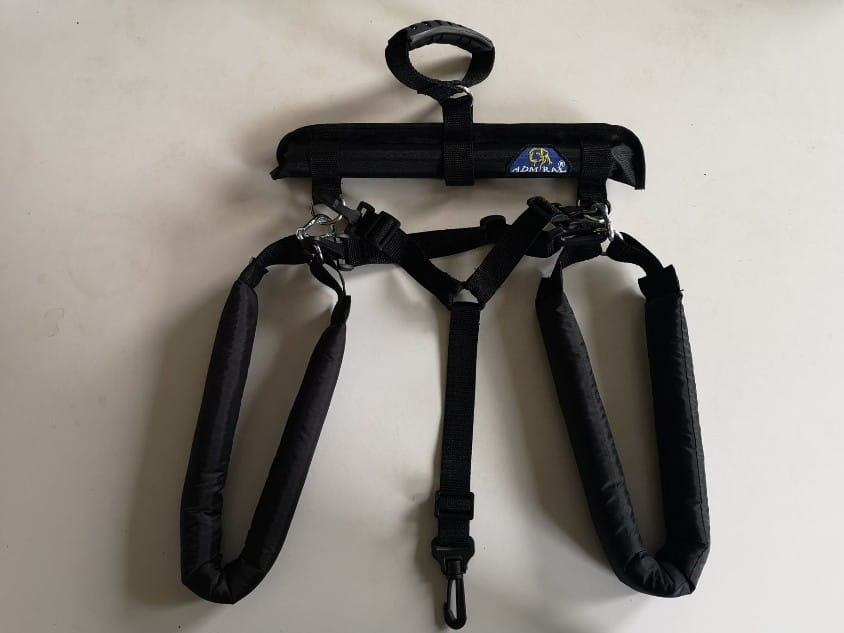 Fiecare ham este detașabil separat, ceea ce facilitează ridicarea în poziție verticală a câinilor culcați, în special a celor de rase mari și grele, de exemplu după operații.