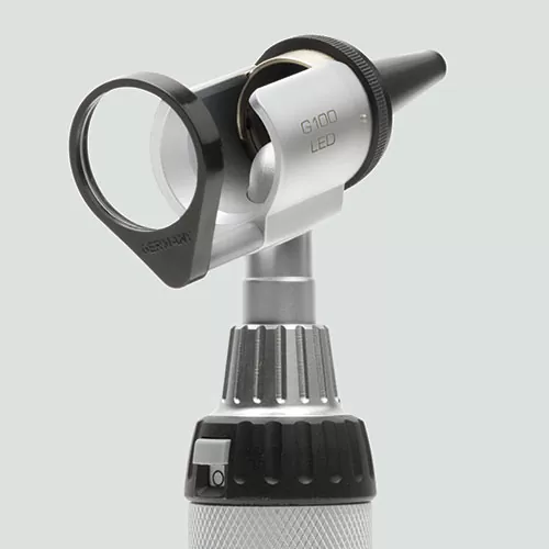 Capul LED G100 este echipat cu iluminare LEDHQ, care are o durată de viață practic nelimitată. Nu este necesară înlocuirea becului, ceea ce se traduce prin costuri de funcționare reduse. Iluminarea cu fibră optică asigură o iluminare uniformă și foarte puternică, permițând un diagnostic precis și o vizibilitate excelentă a canalului auditiv și a timpanului.