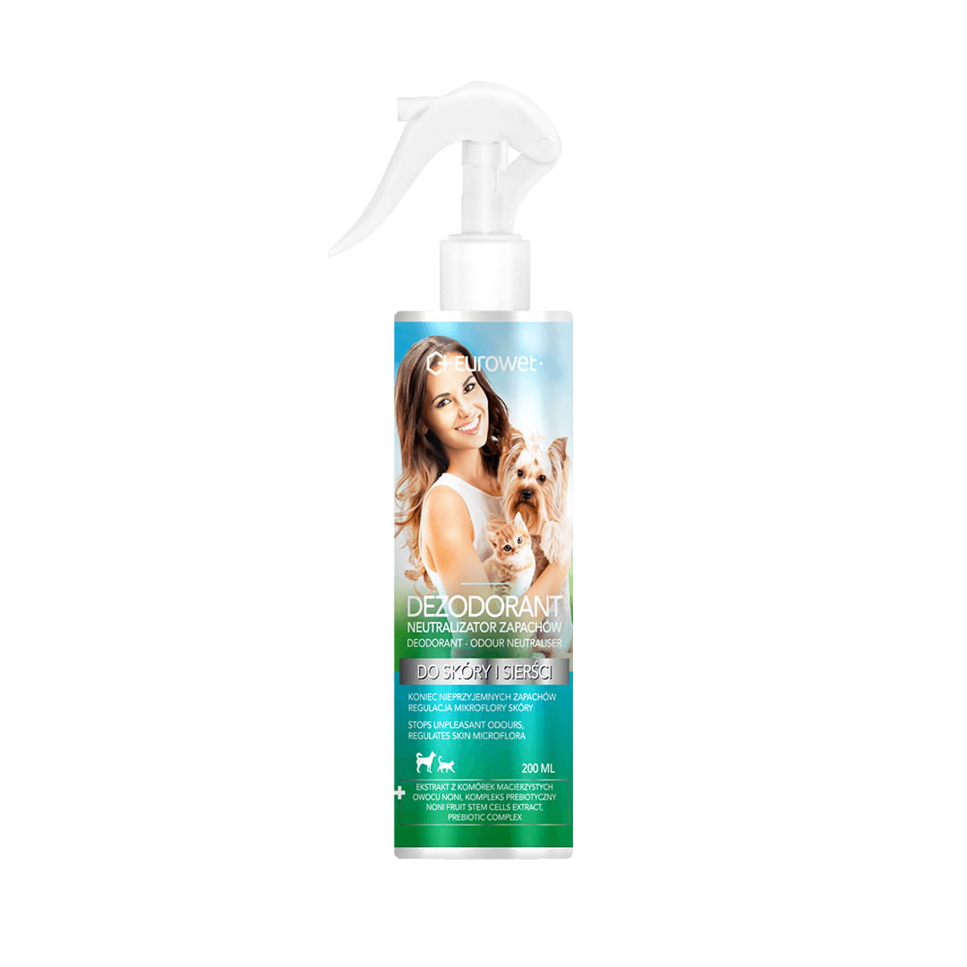 Spray-ul asigură o protecție eficientă împotriva formării mirosurilor neplăcute pe pielea și părul animalelor, în jurul glandelor perianale și în urechi. Formula inovatoare, naturală, pe bază de extract de celule stem din fructul Noni și prebiotice previne formarea mirosurilor neplăcute și dezvoltarea microflorei bacteriene anormale. În același timp, nu afectează funcțiile naturale ale pielii și are un efect benefic asupra stării acesteia.