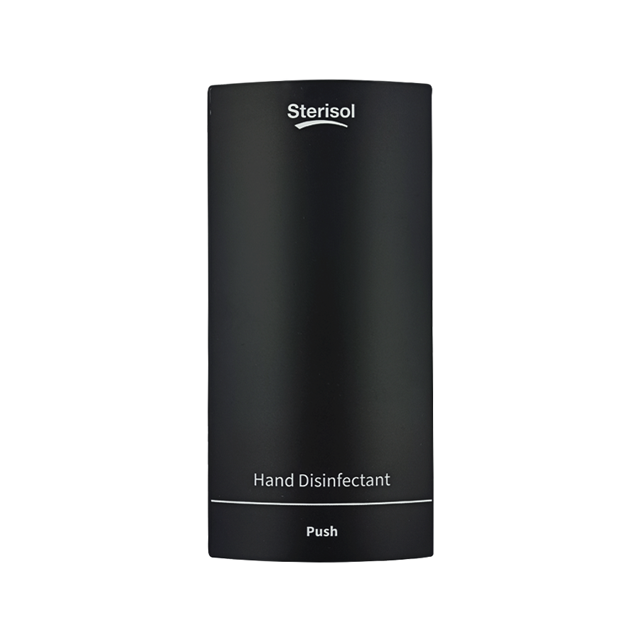 Design estetic: Dispenserul de dezinfectant pentru mâini Ecoline de culoare neagră are un aspect modern și elegant, integrându-se perfect în designul interior al unui cabinet veterinar.
