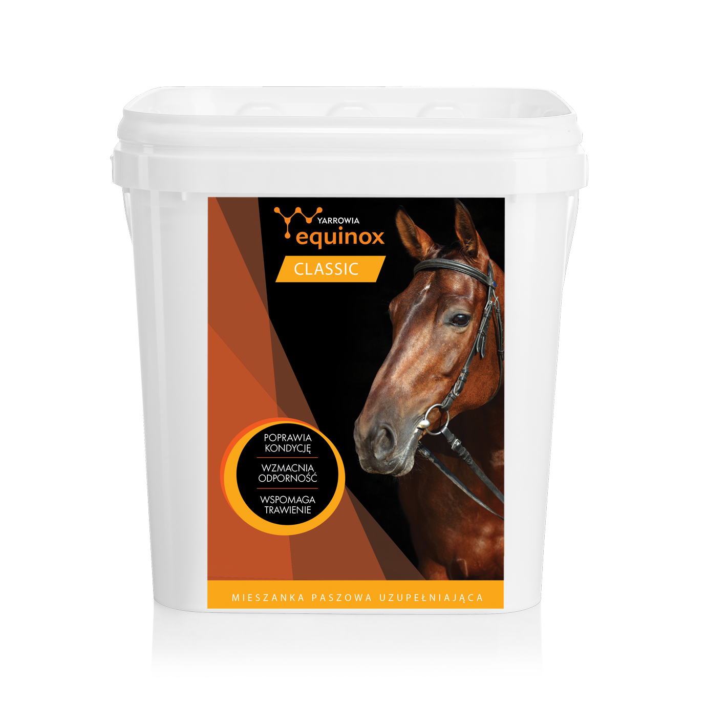 Fiecare cal are nevoie de proteine, grăsimi, vitamine, micro și macro elemente pentru a funcționa corect. Cal tânăr, cal adult, cal senior - fiecare are nevoi diferite. Cu toate acestea, toți au nevoie de sprijin general. Suplimentarea cu Equinox Classic va susține imunitatea, va îmbunătăți calitatea stratului de păr și a coarnei copitelor și, în plus, va ajuta la prevenirea deficiențelor de proteine și de alți nutrienți, datorită complexului de vitamine B, zincului și acizilor grași nesaturați. Produsul se bazează pe o tulpină unică de drojdie Yarrowia lipolytica, caracterizată printr-o bogăție de ingrediente biologic active, cu accent deosebit pe vitaminele B și acizii grași nesaturați, precum și pe o gamă largă de micro și macroelemente. În plus, drojdia Yarrowia lipolytica se distinge prin conținutul său de manani și metaglucani și proteine ușor digerabile cu un profil excepțional de aminoacizi.