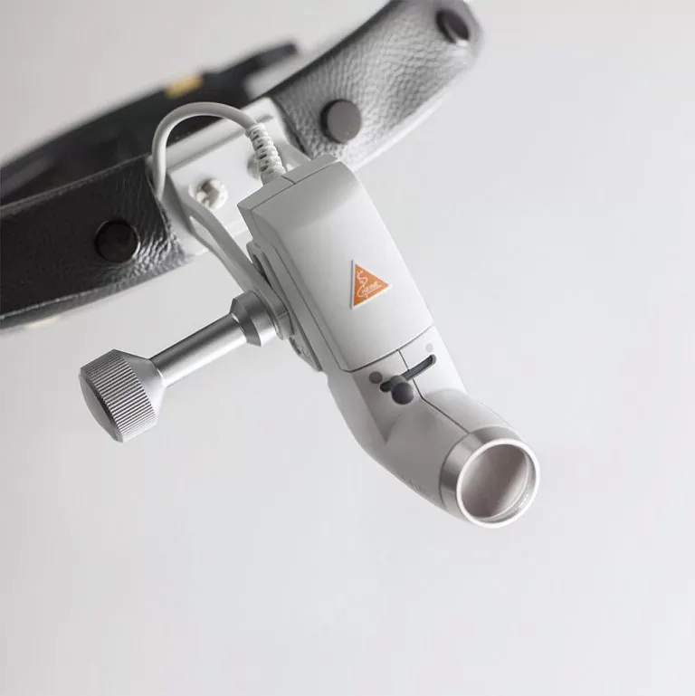Lampa frontală cu LED ML4 - o sursă de lumină cu o putere de neegalat, care emite până la 90.000 lux de lumină puternică, cu o temperatură a culorii de 5.500 Kelvin. Datorită acestei luminozități optime, strălucirea este evitată, făcând examinările precise și confortabile pentru utilizator.
