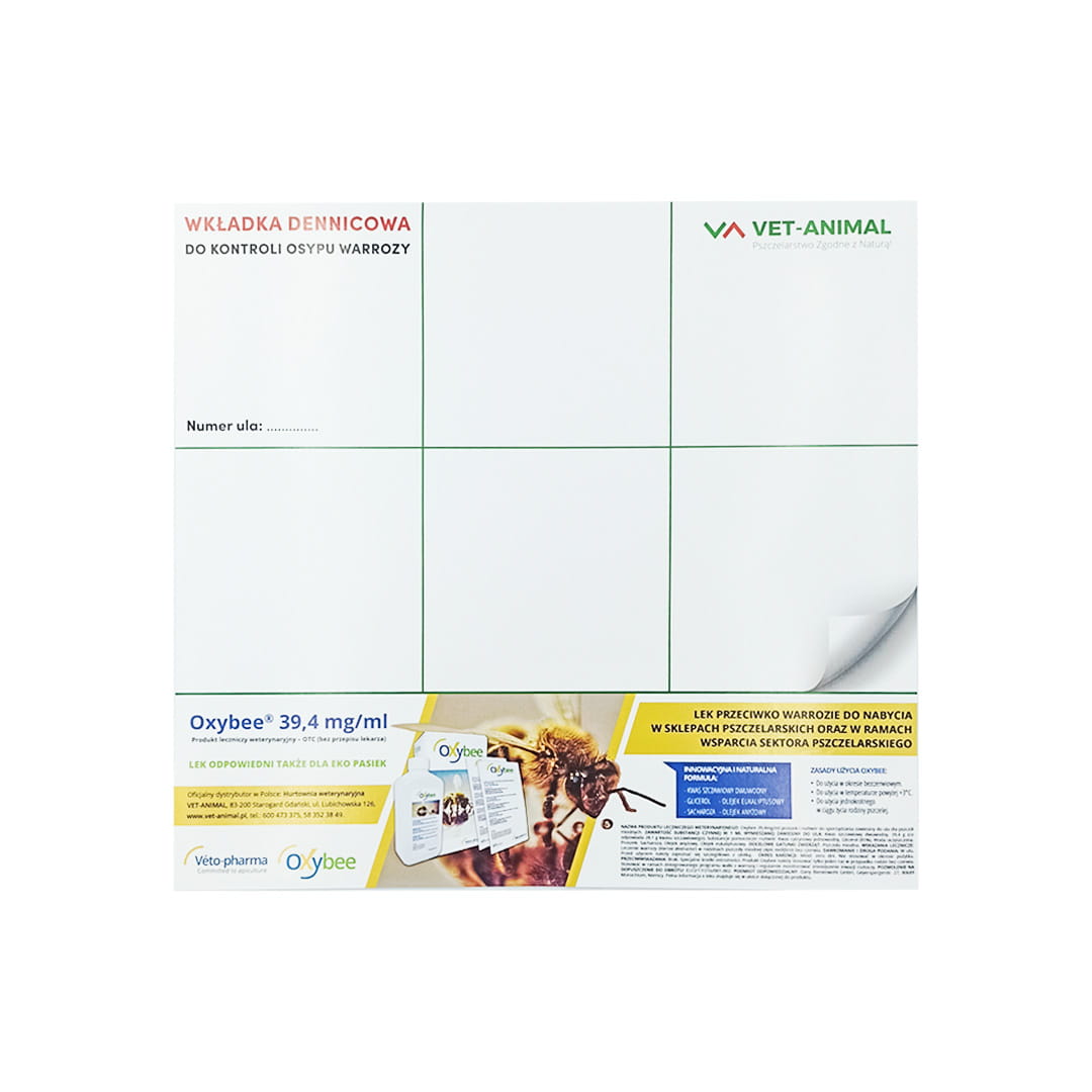 Dispozitivul de control al puietului de varroa este acoperit cu un strat de adeziv netoxic care face ca acarienii să se lipească ușor de el pentru a estima numărul lor și nivelul de infestare a coloniei. De asemenea, funcționează bine pentru verificarea nivelului de depunere a coloniilor după aplicarea tratamentului. Grila imprimată pe foaia de 10 x 10 cm facilitează numărarea.