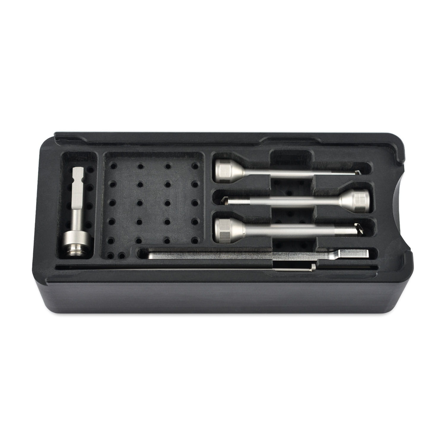 • Pachet de fire de foraj Kirscher (5 bucăți) cu un diametru de 1,6 mm și o lungime de 100 mm, asigurând o penetrare adecvată a osului.