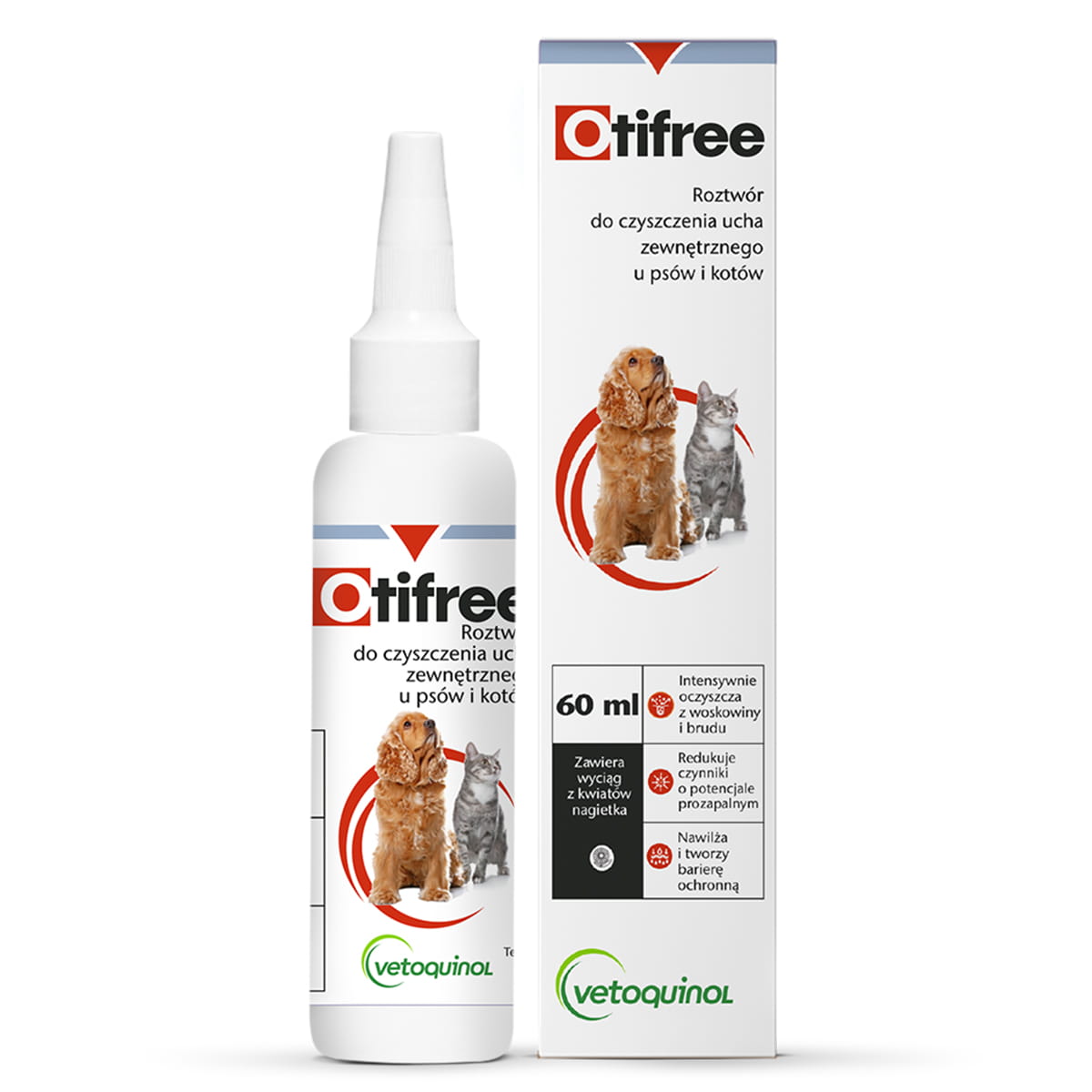 Animalul dvs. de companie devine nerăbdător atunci cândîși curăță urechile? Avem o soluție pentru asta! LaVetoquinol,credem că ocurățareeficientăși un sentiment de confort ar trebui să meargă mână în mână.Acesta este motivul pentru care a fost creatOtifree- unpreparat delicat pentrucurățareacanalului auditiv extern al câinilor și pisicilor.Combinația unică de ingrediente a soluției permitedizolvareaintensivăa cerumenuluiși a murdăriei persistente, fără a irita pielea .