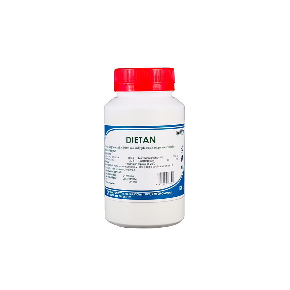 Preparatul antidiareic Dietan Univit este o alegere excelentă pentru proprietarii de câini și pisici care doresc să aibă grijă de sănătatea digestivă a prietenilor lor blănoși. Datorită formulei sale atent selecționate, acest supliment alimentar este un sprijin eficient în combaterea și ameliorarea simptomelor diareei, ajutându-ne animalele de companie să revină la o stare de sănătate bună și confort. Oferindu-le formula Dietan's Univit, le asigurăm sănătatea și bunăstarea, permițându-le să se bucure de o calitate mai bună zi de zi.