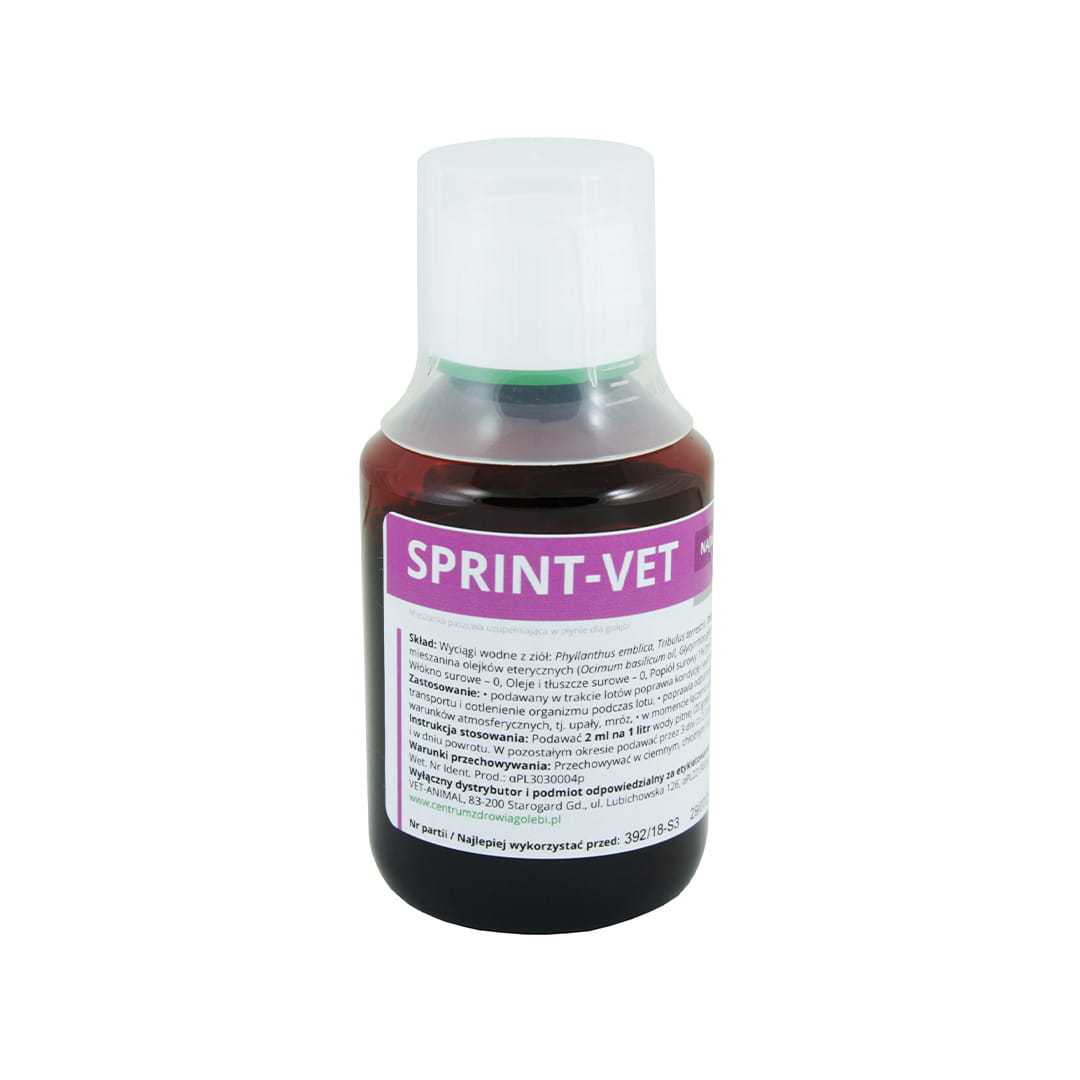 SPRINT-VET este un preparat special formulat pentru îmbunătățirea condiției și rezistenței porumbeilor în timpul zborurilor de concurs și al transportului. Datorită ingredientelor atent selecționate, inclusiv extracte din plante precum Tribulus terrestris, Ocimum basilicum, Phyllanthus emblica și Glycyrrhiza glabra, acest produs susține sănătatea și performanța păsărilor în condiții meteorologice dificile și situații stresante.