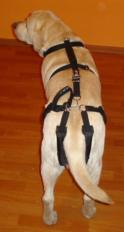 Hamul Standard Plus este conectat la hamul deumăr cu ocurea de legătură. Hamul are untampon special pepartea pieptului și a antebrațului pentru adistribui uniform tensiunea atunci când susține câinele și o prindere de mânăîn partea dorsală .Setul de hamuri Standard Plus nu este potrivit pentru câinii cu leziuni ale coloanei vertebrale.Pentru acești câini recomandăm hamul Max Vest cu șine de corset, căruciorul Max Large, un corset toracic-gât sau toracolombar.