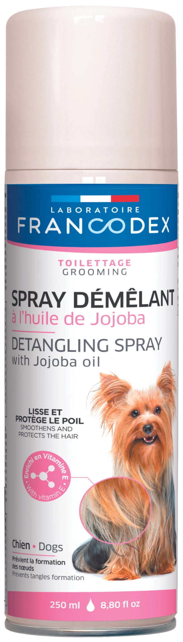 Spray de pieptănat ușor cu ulei de jojoba 250 ml de la Laboratoire Francodex. Detanglarea unei blănuri lungi poate fi o provocare, dar spray-ul nostru de pieptănare ușoară este aici pentru a vă ajuta. Nu numai că va aborda încurcăturile de descurcare, dar va preveni și formarea lor din nou.