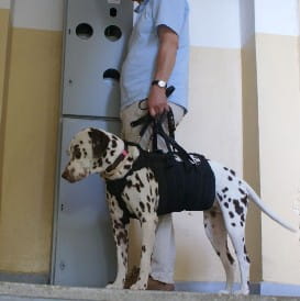 Transportorul este conceput pentru rasele mari de câini, în special pentru cele cu probleme la membrele anterioare, pentru a ajuta la ghidarea câinelui. Are mânere plasate pe două părți, facilitând, dacă este necesar, conducerea câinelui de către două persoane.